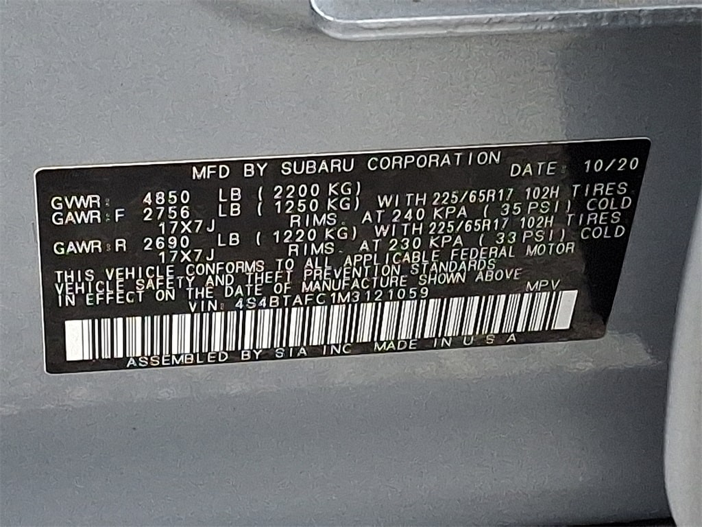 Certified. *SUBARU CERTIFIED*, *BLUETOOTH*, *HEATED SEATS*, *USB*, *SATELLITE RADIO*, *BACK UP CAMERA*, *BLIND SPOT MONITOR*. Check out all these great options BSD & RCTA & Keyless Access & Push Button Start (Blind Spot Detection (BSD), Hands-Free Power Rear Gate, Keyless Access w/Push Button Start, Power Moonroof, Radio: Subaru STARLINK 11.6" Multimedia Nav System, and Rear Cross Traffic Alert (RCTA)), Subaru Certified Pre-Owned Certified, 3.90 Axle Ratio, 4-Wheel Disc Brakes, 6 Speakers, ABS brakes, Air Conditioning, All-Weather Floor Liners, Alloy wheels, AM/FM radio: SiriusXM, Auto High-beam Headlights, Automatic temperature control, Brake assist, Bumpers: body-color, Cloth Upholstery, Driver door bin, Driver vanity mirror, Dual front impact airbags, Dual front side impact airbags, Electronic Stability Control, Emergency communication system: STARLINK Safety and Security (Subscription Required), Exterior Parking Camera Rear, Four wheel independent suspension, Front anti-roll bar, Front Bucket Seats, Front Center Armrest w/Storage, Front dual zone A/C, Front fog lights, Front reading lights, Fully automatic headlights, Heated door mirrors, Heated Front Bucket Seats, Heated front seats, Illuminated entry, Knee airbag, Leather steering wheel, Low tire pressure warning, Occupant sensing airbag, Outside temperature display, Overhead airbag, Overhead console, Panic alarm, Passenger door bin, Passenger vanity mirror, Power door mirrors, Power driver seat, Power steering, Power windows, Radio: Subaru STARLINK 11.6" Multimedia Plus Sys, Rear anti-roll bar, Rear Seat Back Protector, Rear seat center armrest, Rear window defroster, Rear window wiper, Remote keyless entry, Roof rack, Security system, Speed control, Speed-sensing steering, Splash Guards, Split folding rear seat, Spoiler, STARLINK/Apple CarPlay/Android Auto, Steering wheel mounted audio controls, Steering Wheel Paddle Shift Control Switches, Tachometer, Telescoping steering wheel, Tilt steering wheel, Traction control, Trip computer, Turn signal indicator mirrors, Variably intermittent wipers, and Wheels: 17" x 7J Black Aluminum Alloy.