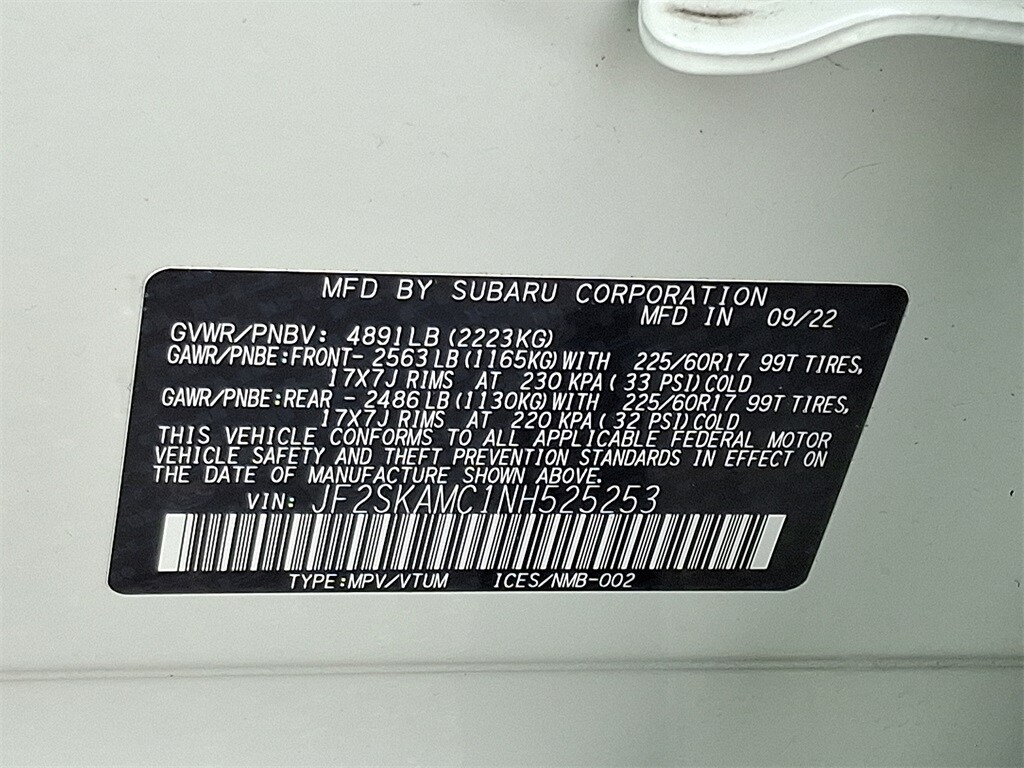 Certified. *SUBARU CERTIFIED*, *NAVIGATION*, *BLUETOOTH*, *HEATED SEATS*, *LEATHER*, *SUNROOF*, *USB*, *SATELLITE RADIO*, *BACK UP CAMERA*, *BLIND SPOT MONITOR*, 28 MPG. Check out all these great options Audio System & Navigation & Power Rr Gate (harman/kardon 576W Amp & Speaker System, Power Rear Gate, and Radio: Subaru Starlink 8.0" Multimedia Nav System), Subaru Certified Pre-Owned Certified, 4-Wheel Disc Brakes, 4.11 Axle Ratio, 6 Speakers, ABS brakes, Air Conditioning, Alloy wheels, AM/FM radio: SiriusXM, Anti-whiplash front head restraints, Auto High-beam Headlights, Auto-Dimming Exterior Mirror w/Approach Lighting, Auto-Dimming Mirror w/Compass & HomeLink, Automatic temperature control, Brake assist, Bumpers: body-color, CD player, Driver door bin, Driver vanity mirror, Dual front impact airbags, Dual front side impact airbags, Electronic Stability Control, Emergency communication system: STARLINK Safety and Security (Subscription Required), Exterior Parking Camera Rear, Four wheel independent suspension, Front anti-roll bar, Front Bucket Seats, Front Center Armrest, Front dual zone A/C, Front fog lights, Front reading lights, Fully automatic headlights, Heated door mirrors, Heated Front Bucket Seats, Heated front seats, Illuminated entry, Knee airbag, Leather Shift Knob, Low tire pressure warning, Navigation System, Occupant sensing airbag, Outside temperature display, Overhead airbag, Overhead console, Panic alarm, Passenger door bin, Passenger vanity mirror, Power door mirrors, Power driver seat, Power moonroof: Panoramic, Power steering, Power windows, Radio data system, Radio: Subaru Starlink 8.0" Multimedia Plus System, Rear anti-roll bar, Rear Bumper Cover, Rear seat center armrest, Rear window defroster, Rear window wiper, Remote keyless entry, Roof rack: rails only, Security system, Speed control, Speed-sensing steering, Split folding rear seat, Spoiler, STARLINK/Apple CarPlay/Android Auto, Steering wheel mounted audio controls, Tachometer, Telescoping steering wheel, Textured StarTex Upholstery, Tilt steering wheel, Traction control, Trip computer, Turn signal indicator mirrors, Variably intermittent wipers, Wheels: 17" x 7.0J Matte Black Machine Finish Alloy, Wilderness Rear Seatback Protector, and Wilderness Splash Guards.
