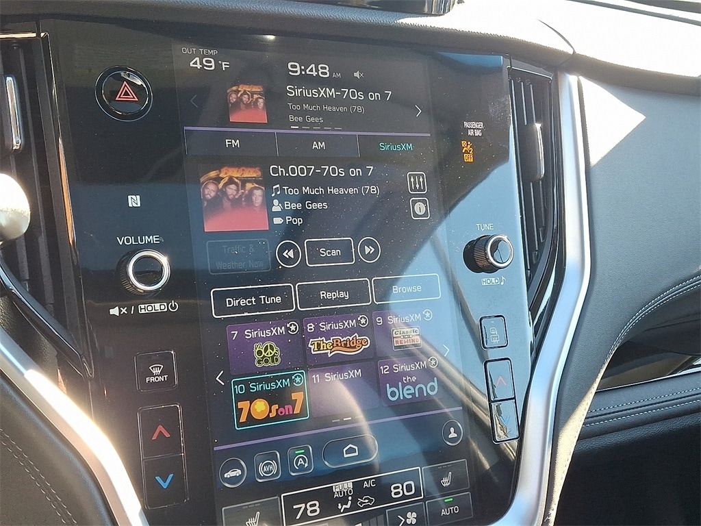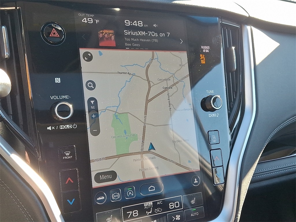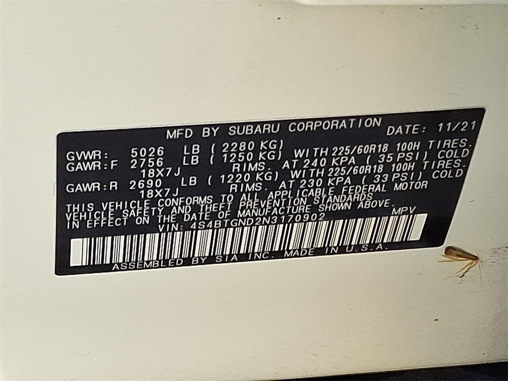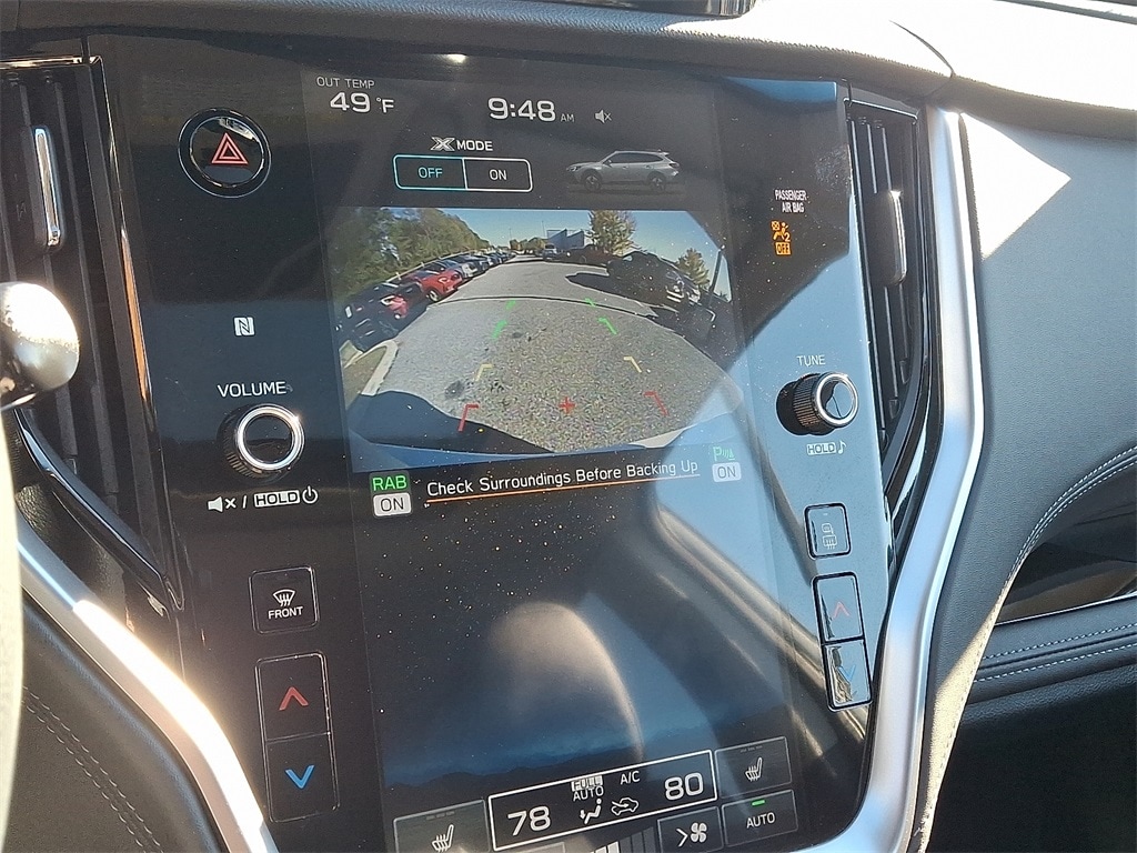 Certified. *SUBARU CERTIFIED*, *NAVIGATION*, *BLUETOOTH*, *HEATED SEATS*, *LEATHER*, *SUNROOF*, *USB*, *SATELLITE RADIO*, *BACK UP CAMERA*, *BLIND SPOT MONITOR*. Check out all these great options Standard Model, Subaru Certified Pre-Owned Certified, 12 Speakers, 4-Wheel Disc Brakes, 4.111 Axle Ratio, ABS brakes, Air Conditioning, All-Weather Floor Liners, Alloy wheels, AM/FM radio: SiriusXM, Auto High-beam Headlights, Auto-dimming Rear-View mirror, Automatic temperature control, Brake assist, Bumpers: body-color, Compass, Driver door bin, Driver vanity mirror, Dual front impact airbags, Dual front side impact airbags, Electronic Stability Control, Emergency communication system: STARLINK Safety and Security (Subscription Required), Exterior Parking Camera Rear, Four wheel independent suspension, Front anti-roll bar, Front Bucket Seats, Front Center Armrest w/Storage, Front dual zone A/C, Front fog lights, Front reading lights, Fully automatic headlights, Garage door transmitter: HomeLink, harman/kardon® Speakers, Heated door mirrors, Heated Front Bucket Seats, Heated front seats, Heated rear seats, Heated steering wheel, HVAC memory, Illuminated entry, Knee airbag, Leather steering wheel, Low tire pressure warning, Memory seat, Navigation System, Occupant sensing airbag, Outside temperature display, Overhead airbag, Overhead console, Panic alarm, Passenger door bin, Passenger vanity mirror, Perforated Leather-Trimmed Upholstery, Power door mirrors, Power driver seat, Power Liftgate, Power moonroof, Power passenger seat, Power steering, Power windows, Radio: Subaru STARLINK 11.6" Multimedia Nav System, Rear anti-roll bar, Rear Seat Back Protector, Rear seat center armrest, Rear window defroster, Rear window wiper, Remote keyless entry, Roof rack, Security system, Speed control, Speed-sensing steering, Split folding rear seat, Spoiler, STARLINK/Apple CarPlay/Android Auto, Steering wheel mounted audio controls, Steering Wheel Paddle Shift Control Switches, Tachometer, Telescoping steering wheel, Tilt steering wheel, Traction control, Trip computer, Turn signal indicator mirrors, Variably intermittent wipers, and Wheels: 18" x 7J Black Aluminum Alloy.