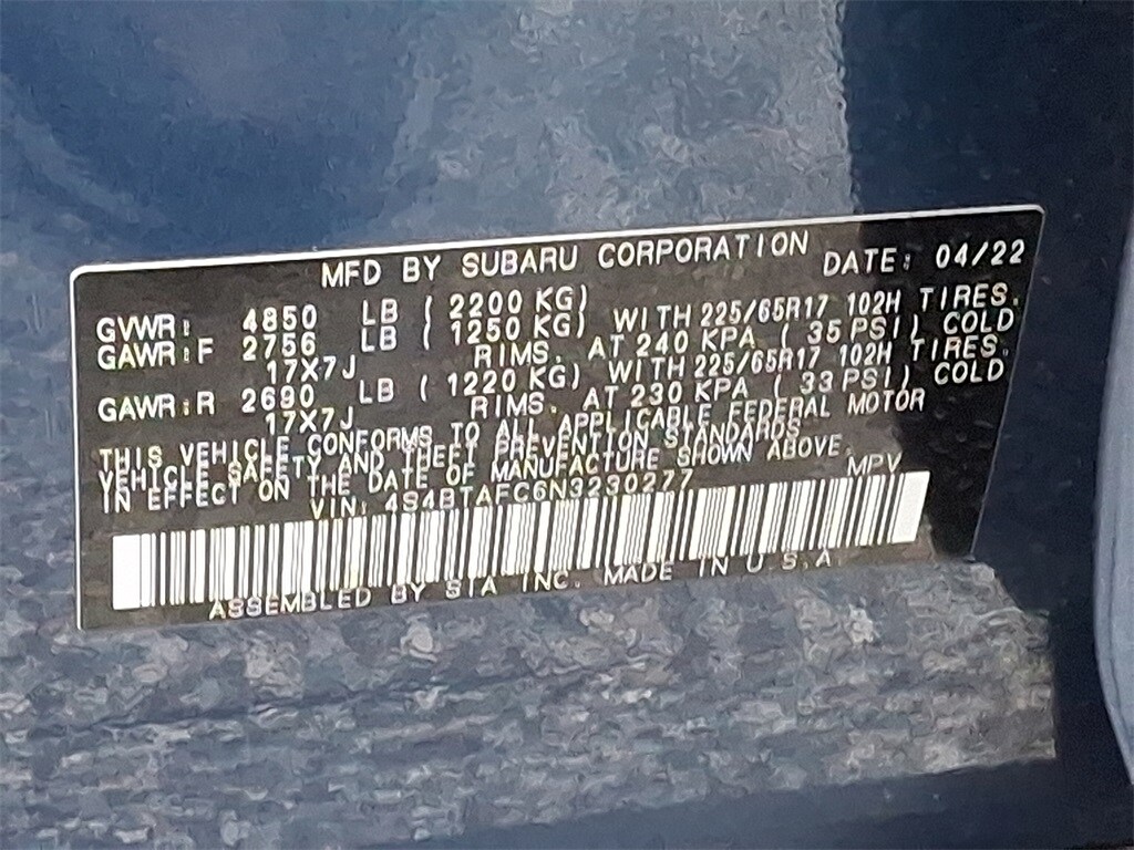 Certified. *SUBARU CERTIFIED*, *BLUETOOTH*, *HEATED SEATS*, *USB*, *SATELLITE RADIO*, *BACK UP CAMERA*. Check out all these great options BSD & RCTA & Keyless Access & Push Button Start (Blind Spot Detection (BSD), Hands-Free Power Rear Gate, Keyless Access w/Push Button Start, Power Moonroof, Radio: Subaru STARLINK 11.6" Multimedia Nav System, and Rear Cross Traffic Alert (RCTA)), Popular Package #1 (All-Weather Floor Liners, Auto-Dimming Exterior Mirror w/Approach Light, Auto-Dimming Mirror w/Compass & HomeLink, Dome Light LED Upgrade, and Rear Bumper Cover), Subaru Certified Pre-Owned Certified, 3.90 Axle Ratio, 4-Wheel Disc Brakes, 6 Speakers, ABS brakes, Air Conditioning, Alloy wheels, AM/FM radio: SiriusXM, Auto High-beam Headlights, Automatic temperature control, Brake assist, Bumpers: body-color, Cloth Upholstery, Driver door bin, Driver vanity mirror, Dual front impact airbags, Dual front side impact airbags, Electronic Stability Control, Emergency communication system: STARLINK Safety and Security (Subscription Required), Exterior Parking Camera Rear, Four wheel independent suspension, Front anti-roll bar, Front Bucket Seats, Front Center Armrest w/Storage, Front dual zone A/C, Front fog lights, Front reading lights, Fully automatic headlights, Heated door mirrors, Heated Front Bucket Seats, Heated front seats, Illuminated entry, Knee airbag, Leather steering wheel, Low tire pressure warning, Occupant sensing airbag, Outside temperature display, Overhead airbag, Overhead console, Panic alarm, Passenger door bin, Passenger vanity mirror, Power door mirrors, Power driver seat, Power steering, Power windows, Radio: Subaru STARLINK 11.6" Multimedia Plus Sys, Rear anti-roll bar, Rear seat center armrest, Rear window defroster, Rear window wiper, Remote keyless entry, Roof rack, Security system, Speed control, Speed-sensing steering, Split folding rear seat, Spoiler, STARLINK/Apple CarPlay/Android Auto, Steering wheel mounted audio controls, Steering Wheel Paddle Shift Control Switches, Tachometer, Telescoping steering wheel, Tilt steering wheel, Traction control, Trip computer, Turn signal indicator mirrors, Variably intermittent wipers, and Wheels: 17" x 7J Black Aluminum Alloy.