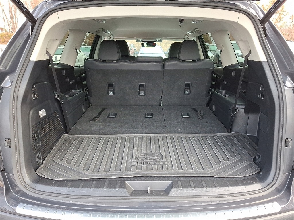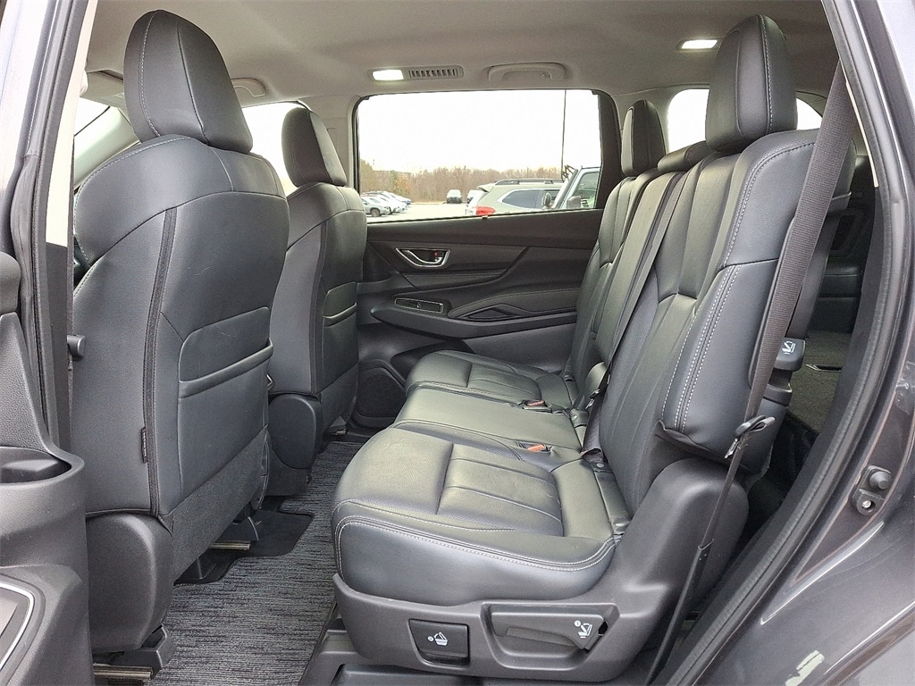 Certified. *SUBARU CERTIFIED*, *NAVIGATION*, *BLUETOOTH*, *HEATED SEATS*, *LEATHER*, *SUNROOF*, *USB*, *SATELLITE RADIO*, *BACK UP CAMERA*, *BLIND SPOT MONITOR*. Check out all these great options Standard Model, Subaru Certified Pre-Owned Certified, 3rd row seats: bench, 4-Wheel Disc Brakes, 6 Speakers, ABS brakes, Aero Crossbar Set, Air Conditioning, Alloy wheels, AM/FM radio: SiriusXM, Auto High-beam Headlights, Auto-Dimming Exterior Mirror w/Approach Light, Auto-dimming Rear-View mirror, Automatic temperature control, Axle Ratio: 4.44, Brake assist, Bumpers: body-color, Cargo Tray, Delay-off headlights, Driver door bin, Driver vanity mirror, Dual front impact airbags, Dual front side impact airbags, Electronic Stability Control, Emergency communication system: STARLINK Safety and Security (Subscription Required), Exterior Parking Camera Rear, Four wheel independent suspension, Front anti-roll bar, Front Bucket Seats, Front Center Armrest, Front dual zone A/C, Front fog lights, Front reading lights, Fully automatic headlights, Garage door transmitter: HomeLink, Heated door mirrors, Heated Front Bucket Seats, Heated front seats, Heated rear seats, Heated steering wheel, HVAC memory, Illuminated entry, Knee airbag, Leather Shift Knob, Leather steering wheel, Low tire pressure warning, Map & Reading Lights LED Upgrade - 6 Bulb Kit, Memory seat, Occupant sensing airbag, Outside temperature display, Overhead airbag, Overhead console, Panic alarm, Passenger door bin, Passenger vanity mirror, Perforated Leather-Trimmed Upholstery, Power door mirrors, Power driver seat, Power Liftgate, Power passenger seat, Power steering, Power windows, Radio data system, Radio: Subaru STARLINK 11.6" Multimedia Plus System, Rear air conditioning, Rear anti-roll bar, Rear Bumper Cover, Rear reading lights, Rear seat center armrest, Rear window defroster, Rear window wiper, Reclining 3rd row seat, Remote keyless entry, Security system, Speed control, Speed-sensing steering, Splash Guards, Split folding rear seat, Spoiler, STARLINK/Apple CarPlay/Android Auto, Steering wheel mounted audio controls, Tachometer, Telescoping steering wheel, Tilt steering wheel, Traction control, Trip computer, Turn signal indicator mirrors, Variably intermittent wipers, and Wheels: 20" x 7.5 J Dk Gray Alloy w/Machine Finish.