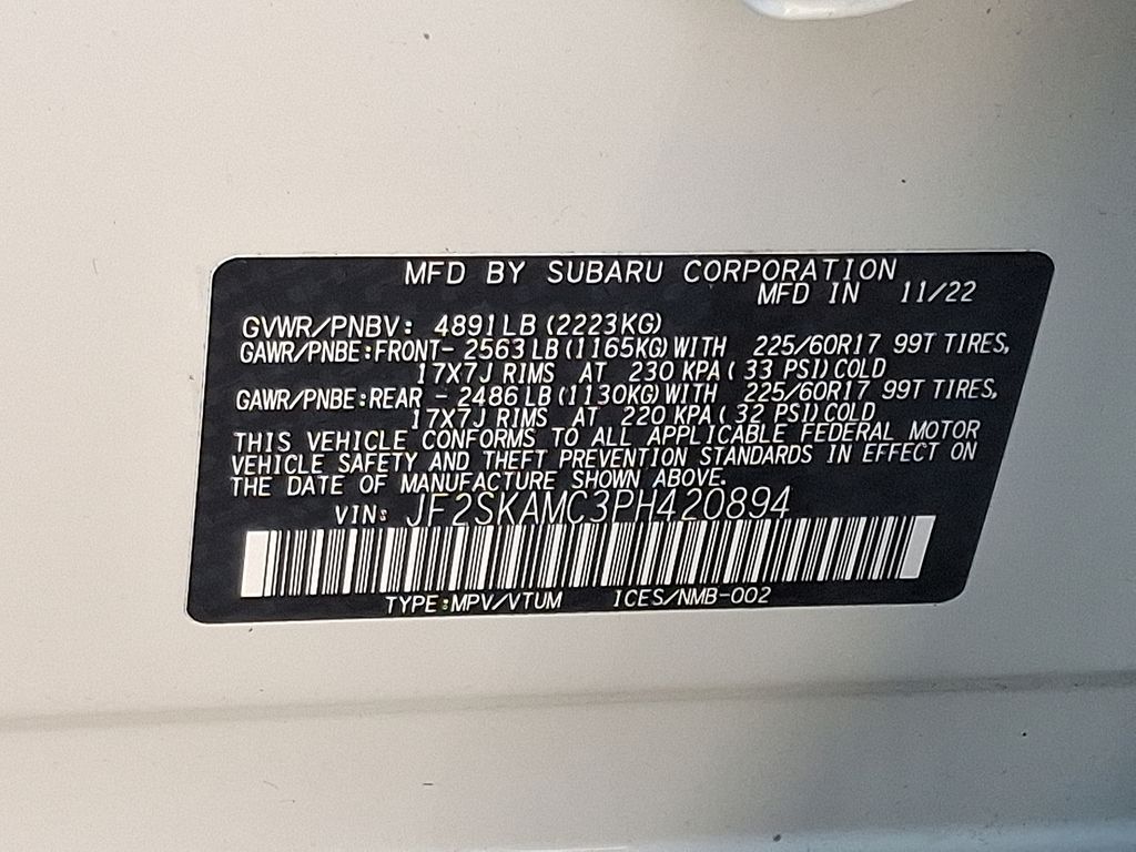 Certified. *SUBARU CERTIFIED*, *NAVIGATION*, *BLUETOOTH*, *HEATED SEATS*, *LEATHER*, *SUNROOF*, *USB*, *SATELLITE RADIO*, *BACK UP CAMERA*, *BLIND SPOT MONITOR*, 1 OWNER!!! LOADED!!! FRESH NEW CAR TRADE!!!. Check out all these great options 8" Audio w/harman/kardon & Power Rear Gate (harman/kardon 9-Speaker Audio System, Power Rear Gate, and Radio: Subaru Starlink 8.0" Multimedia Nav System), Subaru Certified Pre-Owned Certified, 4-Wheel Disc Brakes, 4.11 Axle Ratio, 6 Speakers, ABS brakes, Air Conditioning, Alloy wheels, AM/FM radio: SiriusXM, Anti-whiplash front head restraints, Auto High-beam Headlights, Auto-Dimming Mirror w/Compass & HomeLink, Automatic temperature control, Body Side Molding - Crystal White Pearl, Brake assist, Bumpers: body-color, CD player, Driver door bin, Driver vanity mirror, Dual front impact airbags, Dual front side impact airbags, Electronic Stability Control, Emergency communication system: STARLINK Safety and Security (Subscription Required), Exterior Parking Camera Rear, Four wheel independent suspension, Front anti-roll bar, Front Bucket Seats, Front Center Armrest, Front dual zone A/C, Front fog lights, Front reading lights, Fully automatic headlights, Heated door mirrors, Heated Front Bucket Seats, Heated front seats, Illuminated entry, Knee airbag, Leather Shift Knob, Low tire pressure warning, Navigation System, Occupant sensing airbag, Outside temperature display, Overhead airbag, Overhead console, Panic alarm, Passenger door bin, Passenger vanity mirror, Power door mirrors, Power driver seat, Power moonroof: Panoramic, Power steering, Power windows, Radio data system, Radio: Subaru Starlink 8.0" Multimedia Plus System, Rear anti-roll bar, Rear seat center armrest, Rear window defroster, Rear window wiper, Remote keyless entry, Roof rack: rails only, Security system, Speed control, Speed-sensing steering, Split folding rear seat, Spoiler, STARLINK/Apple CarPlay/Android Auto, Steering wheel mounted audio controls, Tachometer, Telescoping steering wheel, Textured StarTex Upholstery, Tilt steering wheel, Traction control, Trip computer, Turn signal indicator mirrors, Variably intermittent wipers, and Wheels: 17" x 7.0 J Matte Black Finish Alum-Alloy.