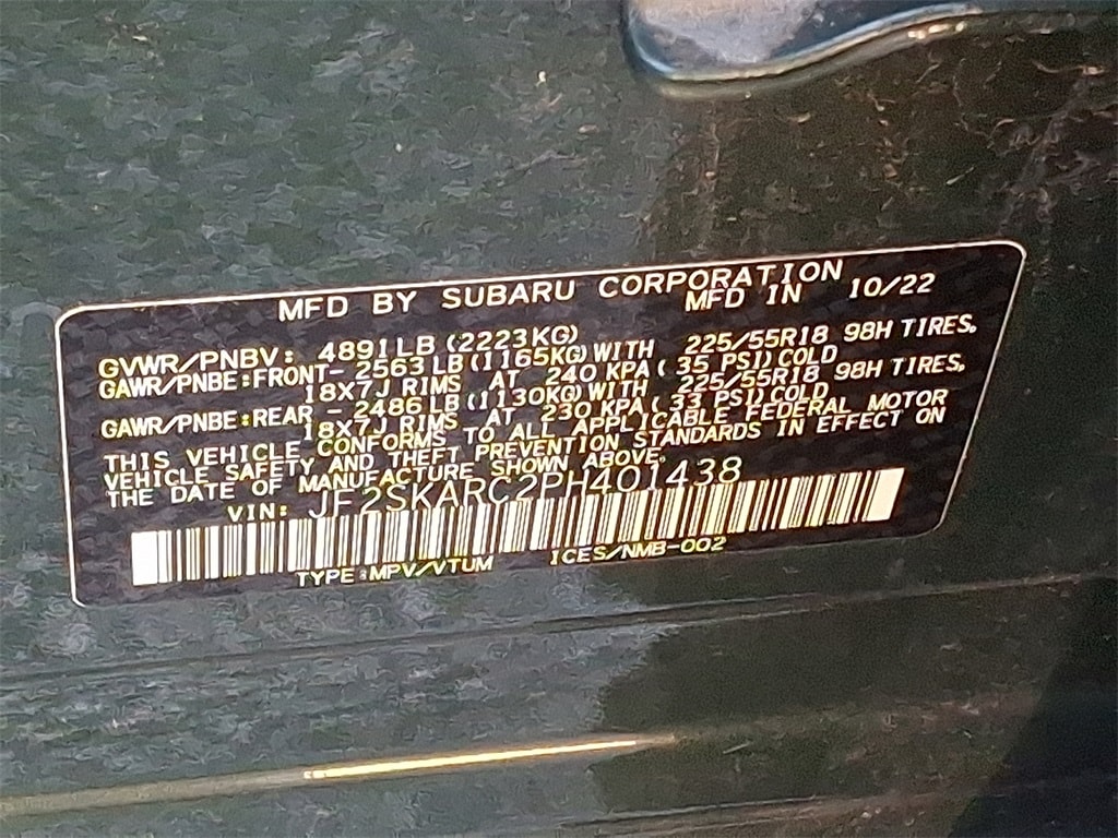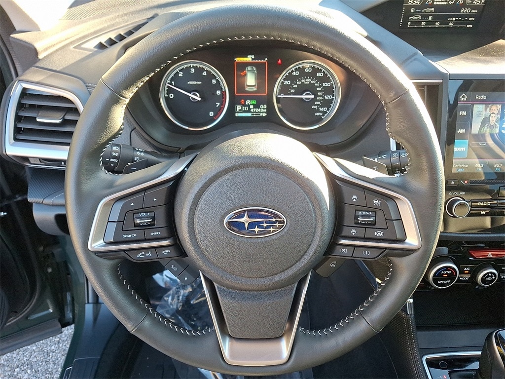 Certified. *SUBARU CERTIFIED*, *NAVIGATION*, *BLUETOOTH*, *HEATED SEATS*, *LEATHER*, *SUNROOF*, *USB*, *SATELLITE RADIO*, *BACK UP CAMERA*, *BLIND SPOT MONITOR*. Check out all these great options Standard Model, Subaru Certified Pre-Owned Certified, 3.70 Axle Ratio, 4-Wheel Disc Brakes, 9 Speakers, ABS brakes, Air Conditioning, All-Weather Floor Liners, Alloy wheels, AM/FM radio: SiriusXM, Anti-whiplash front head restraints, Auto High-beam Headlights, Auto-Dimming Exterior Mirror w/Approach Light, Auto-Dimming Mirror w/Compass & HomeLink, Automatic temperature control, Brake assist, Bumpers: body-color, Cargo Net, CD player, Driver door bin, Driver vanity mirror, Dual front impact airbags, Dual front side impact airbags, Electronic Stability Control, Emergency communication system: STARLINK Safety and Security (Subscription Required), Exterior Parking Camera Rear, Four wheel independent suspension, Front anti-roll bar, Front Bucket Seats, Front Center Armrest, Front dual zone A/C, Front fog lights, Front reading lights, Fully automatic headlights, harman/kardon 9-Speaker Audio System, harman/kardon® Speakers, Heated door mirrors, Heated Front Bucket Seats, Heated front seats, Heated rear seats, Heated steering wheel, HVAC memory, Illuminated entry, Knee airbag, Leather Shift Knob, Low tire pressure warning, Memory seat, Navigation System, Occupant sensing airbag, Outside temperature display, Overhead airbag, Overhead console, Panic alarm, Passenger door bin, Passenger vanity mirror, Perforated Leather-Trimmed Upholstery, Power door mirrors, Power driver seat, Power Liftgate, Power moonroof: Panoramic, Power passenger seat, Power steering, Power windows, Premium audio system: harman/kardon, Radio data system, Radio: Subaru Starlink 8.0" Multimedia Nav System, Rear anti-roll bar, Rear seat center armrest, Rear Seatback Protector, Rear window defroster, Rear window wiper, Remote keyless entry, Roof rack: rails only, Security system, Side Sill Plates - Front, Speed control, Speed-sensing steering, Splash Guards, Split folding rear seat, Spoiler, STARLINK/Apple CarPlay/Android Auto, Steering wheel mounted audio controls, Tachometer, Telescoping steering wheel, Tilt steering wheel, Traction control, Trip computer, Turn signal indicator mirrors, Variably intermittent wipers, and Wheels: 18" x 7.0 J Dark Gray Machine Finish Alloy.