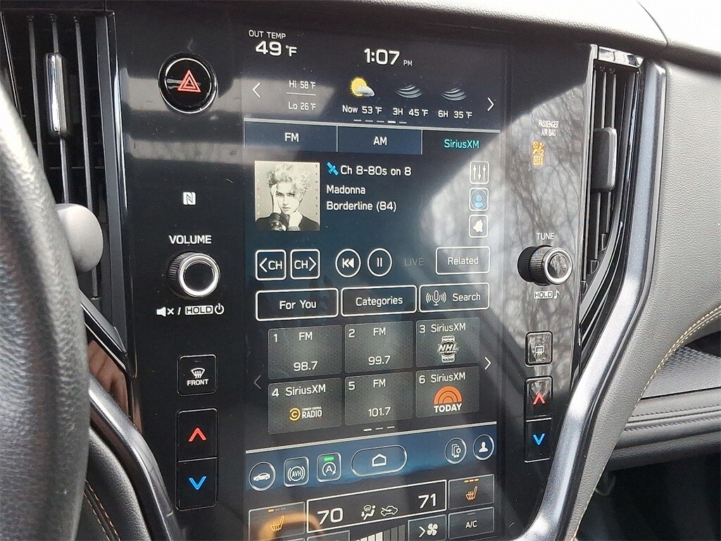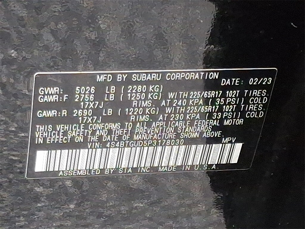 *NAVIGATION*, *BLUETOOTH*, *HEATED SEATS*, *LEATHER*, *SUNROOF*, *USB*, *SATELLITE RADIO*, *BACK UP CAMERA*, *BLIND SPOT MONITOR*. Check out all these great options Power Moonroof & Navigation & RAB (Power Moonroof, Radio: Subaru STARLINK 11.6" Multimedia Nav System, and Reverse Automatic Braking (RAB) System), 4-Wheel Disc Brakes, 4.444 Axle Ratio, 6 Speakers, ABS brakes, Air Conditioning, Alloy wheels, AM/FM radio: SiriusXM, Auto High-beam Headlights, Auto-dimming Rear-View mirror, Automatic temperature control, Brake assist, Cargo Net, Compass, Crystal Black Silica Door Edge Guards, Driver door bin, Driver vanity mirror, Dual front impact airbags, Dual front side impact airbags, Electronic Stability Control, Emergency communication system: STARLINK Safety Plus (3-year free trial), Exterior Parking Camera Rear, Four wheel independent suspension, Front anti-roll bar, Front Bucket Seats, Front Center Armrest w/Storage, Front dual zone A/C, Front fog lights, Front reading lights, Fully automatic headlights, Garage door transmitter: HomeLink, Heated door mirrors, Heated Front Bucket Seats, Heated front seats, Heated rear seats, Illuminated entry, Knee airbag, Leather steering wheel, Low tire pressure warning, Occupant sensing airbag, Outside temperature display, Overhead airbag, Overhead console, Panic alarm, Passenger door bin, Passenger vanity mirror, Power door mirrors, Power driver seat, Power Liftgate, Power passenger seat, Power steering, Power windows, Radio: Subaru STARLINK 11.6" Multimedia Plus Sys, Rear anti-roll bar, Rear seat center armrest, Rear window defroster, Rear window wiper, Remote keyless entry, Roof rack, Security system, Speed control, Speed-sensing steering, Split folding rear seat, Spoiler, StarTex-Trimmed Upholstery, Steering wheel mounted audio controls, Steering Wheel Paddle Shift Control Switches, Tachometer, Telescoping steering wheel, Tilt steering wheel, Traction control, Trip computer, Turn signal indicator mirrors, Variably intermittent wipers, and Wheels: 17" x 7J Black Aluminum Alloy.