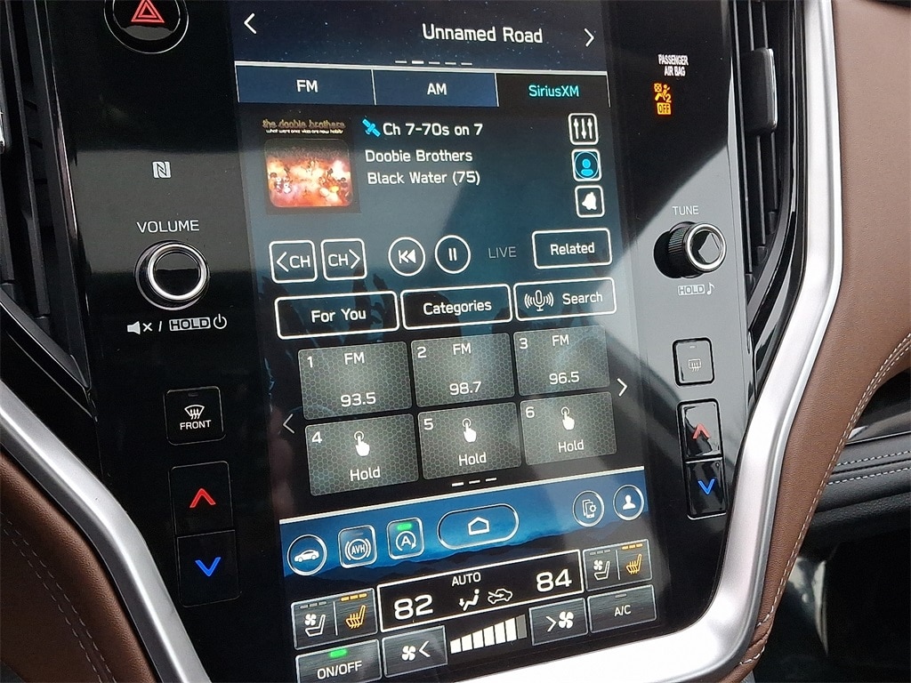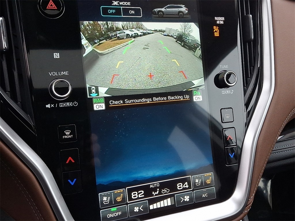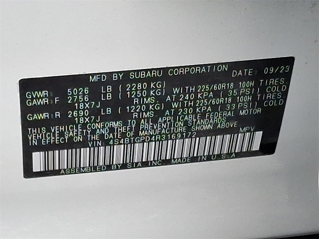 Certified. *SUBARU CERTIFIED*, *NAVIGATION*, *BLUETOOTH*, *HEATED SEATS*, *LEATHER*, *SUNROOF*, *USB*, *SATELLITE RADIO*, *BACK UP CAMERA*, *BLIND SPOT MONITOR*. Check out all these great options Standard Model, Subaru Certified Pre-Owned Certified, 12 Speakers, 4-Wheel Disc Brakes, 4.111 Axle Ratio, ABS brakes, Air Conditioning, All-Weather Floor Liners, Alloy wheels, AM/FM radio: SiriusXM, Auto High-beam Headlights, Auto-Dimming Exterior Mirror w/Approach Light, Auto-dimming Rear-View mirror, Automatic temperature control, Brake assist, Bumpers: body-color, Compass, Driver door bin, Driver vanity mirror, Dual front impact airbags, Dual front side impact airbags, Electronic Stability Control, Emergency communication system: STARLINK Safety Plus (3-year free trial), Exterior Parking Camera Rear, Four wheel independent suspension, Front anti-roll bar, Front Bucket Seats, Front Center Armrest w/Storage, Front dual zone A/C, Front fog lights, Front reading lights, Fully automatic headlights, Garage door transmitter: HomeLink, harman/kardon® Speakers, Heated & Ventilated Front Bucket Seats, Heated door mirrors, Heated front seats, Heated rear seats, Heated steering wheel, HVAC memory, Illuminated entry, Knee airbag, Leather Shift Knob, Leather steering wheel, LED Upgrade, Low tire pressure warning, Memory seat, Navigation system: TomTom Navigation w/what3words, Occupant sensing airbag, Outside temperature display, Overhead airbag, Overhead console, Panic alarm, Passenger door bin, Passenger vanity mirror, Perforated Nappa Leather-Trimmed Upholstery, Power door mirrors, Power driver seat, Power Liftgate, Power moonroof, Power passenger seat, Power steering, Power windows, Radio: Subaru STARLINK 11.6" Multimedia Nav System, Rear anti-roll bar, Rear Bumper Cover, Rear seat center armrest, Rear window defroster, Rear window wiper, Remote CD player, Remote keyless entry, Roof rack, Security system, Speed control, Speed-sensing steering, Splash Guards, Split folding rear seat, Spoiler, Steering wheel mounted audio controls, Tachometer, Telescoping steering wheel, Tilt steering wheel, Traction control, Trip computer, Turn signal indicator mirrors, Variably intermittent wipers, Ventilated front seats, and Wheels: 18" x 7J Black Aluminum-Alloy.