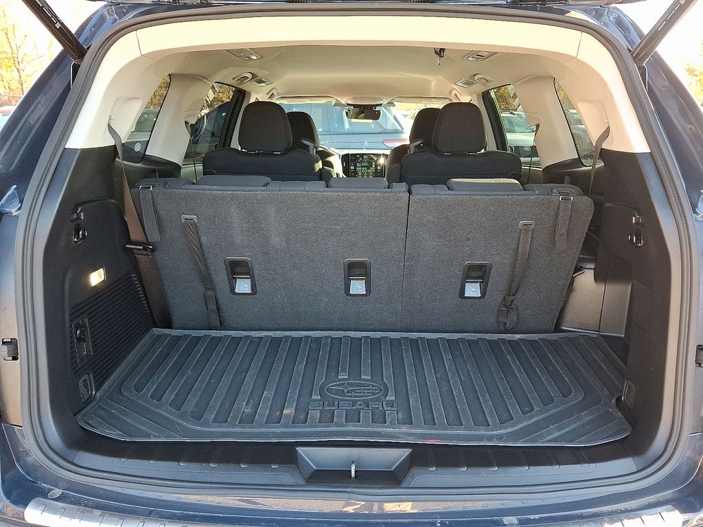 Certified. *SUBARU CERTIFIED*, *BLUETOOTH*, *HEATED SEATS*, *USB*, *SATELLITE RADIO*, *BACK UP CAMERA*, *BLIND SPOT MONITOR*. Check out all these great options Standard Model, Subaru Certified Pre-Owned Certified, 3rd row seats: bench, 4-Wheel Disc Brakes, 6 Speakers, ABS brakes, Air Conditioning, Alloy wheels, AM/FM radio: SiriusXM with 360L, Apple CarPlay & Android Auto, Auto High-beam Headlights, Auto-Dimming Exterior Mirror w/Approach Light, Auto-dimming Rear-View mirror, Automatic temperature control, Brake assist, Bumpers: body-color, Cargo Tray, Compass, Delay-off headlights, Driver door bin, Driver vanity mirror, Dual front impact airbags, Dual front side impact airbags, Electronic Stability Control, Emergency communication system: MySubaru Safety (3-year free trial), Exterior Parking Camera Rear, Four wheel independent suspension, Front anti-roll bar, Front Bucket Seats, Front Center Armrest, Front dual zone A/C, Front reading lights, Fully automatic headlights, Garage door transmitter: HomeLink, Heated door mirrors, Heated Front Bucket Seats, Heated front seats, Illuminated entry, Knee airbag, Leather Shift Knob, Leather steering wheel, LED Upgrade, Low tire pressure warning, Occupant sensing airbag, Outside temperature display, Overhead airbag, Overhead console, Panic alarm, Passenger door bin, Passenger vanity mirror, Power door mirrors, Power driver seat, Power Liftgate, Power steering, Power windows, Radio data system, Radio: Subaru 11.6" Multimedia Plus System, Rear air conditioning, Rear anti-roll bar, Rear Bumper Cover, Rear reading lights, Rear window defroster, Rear window wiper, Reclining 3rd row seat, Remote keyless entry, Security system, Speed control, Speed-sensing steering, Spill Resistant Coated Cloth Upholstery, Splash Guards, Split folding rear seat, Spoiler, Steering wheel mounted audio controls, Tachometer, Telescoping steering wheel, Tilt steering wheel, Traction control, Trip computer, Turn signal indicator mirrors, Variably intermittent wipers, and Wheels: 18" x 7.5 J Gray Alloy w/Machine Finish.