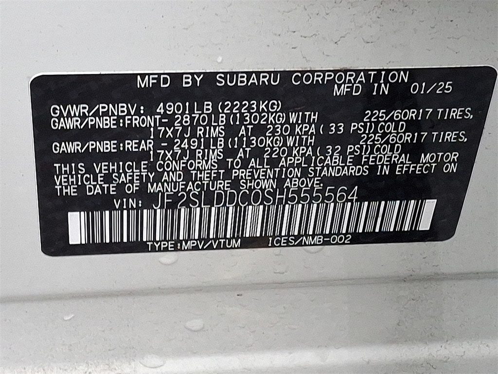 Certified. *SUBARU CERTIFIED*, *BLUETOOTH*, *HEATED SEATS*, *SUNROOF*, *USB*, *SATELLITE RADIO*, *BACK UP CAMERA*, *BLIND SPOT MONITOR*. Check out all these great options Power Rear Gate & Blind Spot Detection w/RCTA (Automatic Emergency Steering, Blind-Spot Detection (BSD)/RCTA System, and Power Rear Gate), Subaru Certified Pre-Owned Certified, 4-Wheel Disc Brakes, 6 Speakers, ABS brakes, Air Conditioning, Alloy wheels, AM/FM radio: SiriusXM with 360L, Anti-whiplash front head restraints, Auto High-beam Headlights, Auto-Dimming Exterior Mirror w/Approach Light, Auto-Dimming Mirror w/Compass & HomeLink, Automatic temperature control, Brake assist, Bumpers: body-color, Driver door bin, Driver vanity mirror, Dual front impact airbags, Dual front side impact airbags, Electronic Stability Control, Emergency communication system: MySubaru Safety (3-year free trial), Exterior Parking Camera Rear, Four wheel independent suspension, Front anti-roll bar, Front Bucket Seats, Front Center Armrest, Front dual zone A/C, Front fog lights, Front reading lights, Fully automatic headlights, Heated door mirrors, Heated Front Bucket Seats, Heated front seats, Illuminated entry, Knee airbag, Leather steering wheel, Low tire pressure warning, Occupant sensing airbag, Outside temperature display, Overhead airbag, Overhead console, Panic alarm, Passenger door bin, Passenger vanity mirror, Power door mirrors, Power driver seat, Power moonroof: Panoramic, Power steering, Power windows, Premium Textured Cloth Upholstery, Radio data system, Radio: Subaru 11.6" Multimedia Plus System, Rear anti-roll bar, Rear Bumper Cover, Rear seat center armrest, Rear window defroster, Rear window wiper, Remote keyless entry, Security system, Speed control, Speed-sensing steering, Splash Guards, Split folding rear seat, Spoiler, Steering wheel mounted audio controls, Tachometer, Telescoping steering wheel, Tilt steering wheel, Traction control, Trip computer, Variably intermittent wipers, and Wheels: 17" x 7.0 J Dark Metallic Aluminum-Alloy.